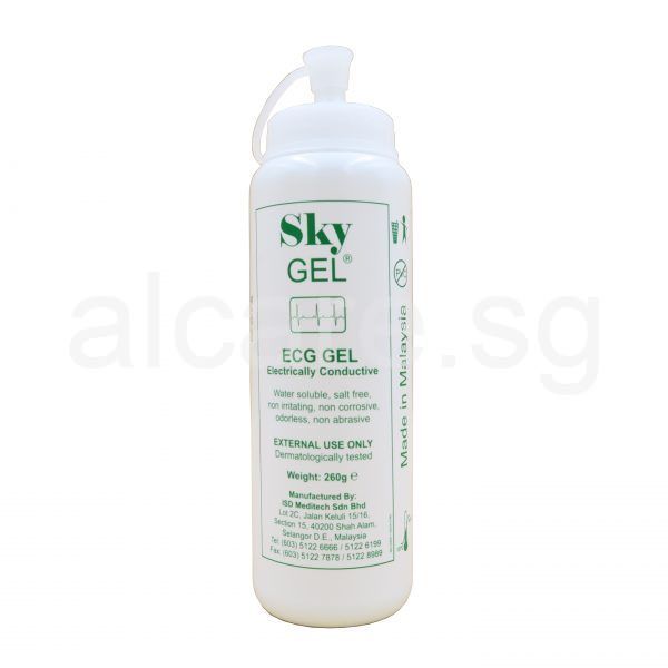 Sky Gel is for multiple use, such as in ECG, EKG and for the ultrasound. It is water-soluble, salt-free, non-irritating, non-corrosive, odourless, non-abrasive.